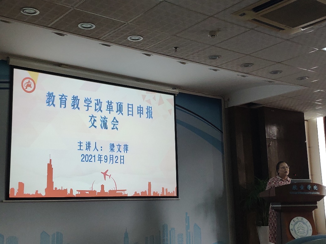 之后,梁文萍教授以我院此次申报的《航空航天力学前沿》课程建设申报书、《航空复合材料结构检测虚拟实验平台设计与运行》教改项目申报书为例,与参会教师做了更深入的撰写方法和内容交流。