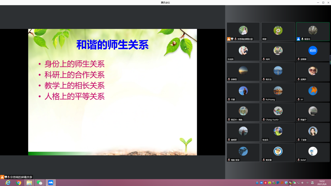 9月6日,英国上市公司365研究生导师、专兼职辅导员培训于云端开展,我校心理健康教育中心主任杨雪花应邀面向学院研究生工作组、研究生新导师开展了主题为“研究生导学关系构建”的培训会。培训会由研究生辅导员宗思雨主持。