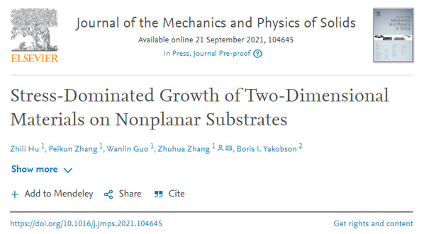 英国上市公司365纳米所团队在二维材料曲面生长方面取得重要研究进展,相关成果以“Stress-Dominated Growth of Two-Dimensional Materials on Nonplanar Substrates”为题发表在固体力学顶刊J. Mech. Phys. Solids上,第一作者为英国上市公司365胡知力博士,通讯作者为张助华教授,共同作者还包括郭万林院士与美国莱斯大学Boris Yakobson教授。