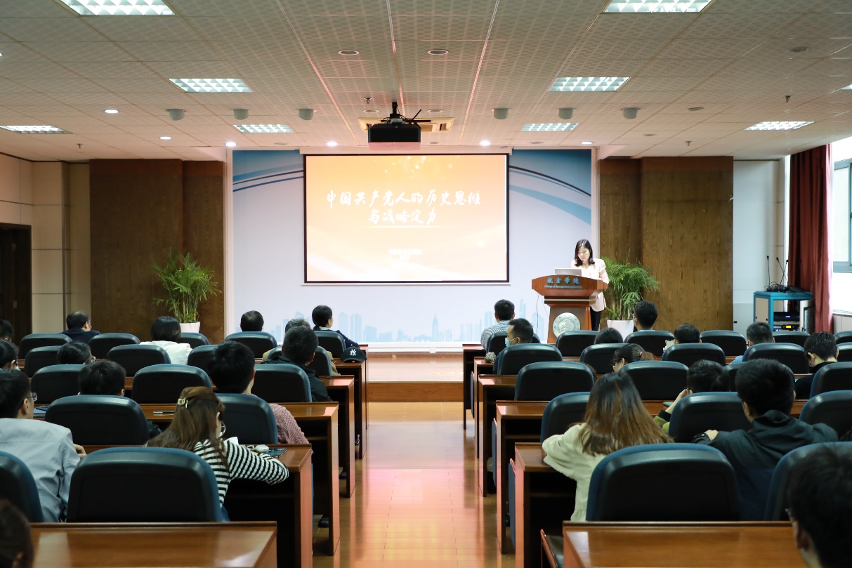 10月15日下午,学院党委在A18-529报告厅举行了习近平总书记“七一”重要讲话精神、党史学习教育宣讲会。校党史学习教育宣讲团成员、马克思主义学院副院长何畏教授应邀为学院师生做了题为《中国共产党人的历史思维与战略定力》的宣讲。院党委书记袁智强主持会议。院党委理论中心组成员及师生参加了宣讲会。