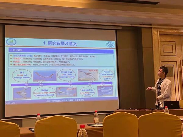 我院智能装备动力学中心胡海岩院士、黄锐老师联合指导的博士研究生周兴华和邹奇彤分别做了题为“受控折叠翼的混沌现象”、“飞翼布局无人机体自由度颤振主动抑制研究”的学术报告,两人均荣获“中国力学学会第二届全国力学博士生学术论坛优秀报告”。