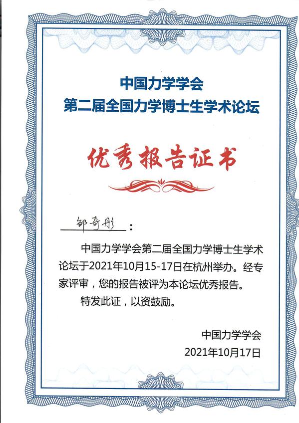 2021年10月15-17日,由中国力学学会主办、浙江大学承办的“中国力学学会第二届全国力学博士生学术论坛”在浙江省杭州市召开。