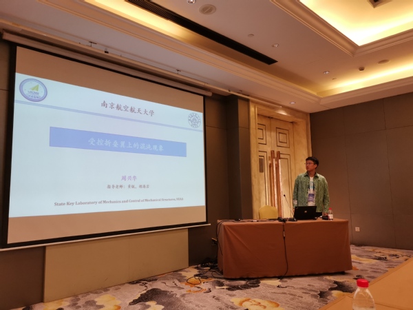 周兴华报告介绍了在可折叠式变体飞行器非线性气动弹性力学领域的最新成果,汇报中关于变体飞行器操纵面激励诱发的混沌振动现象引起了参会人员的兴趣。邹奇彤报告介绍了报告人在飞翼布局无人机的体自由度颤振主动抑制设计及飞行试验方面的最新成果。