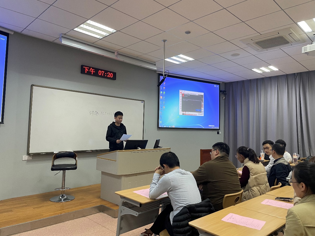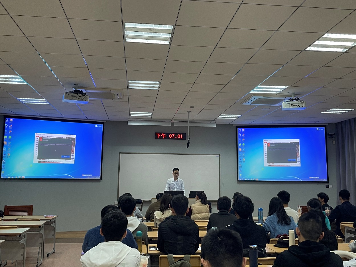 2019级卓越班学生付越同学,作为优秀学生代表发言,他从班级氛围、课外学习、学习资源三个方面,分享了在卓越班大三期间的学习心得和体会。鼓励学弟学妹们不光要会学,更要学会“玩”:充分利用课外时间开展科创训练,在学业和科创上共同进步。