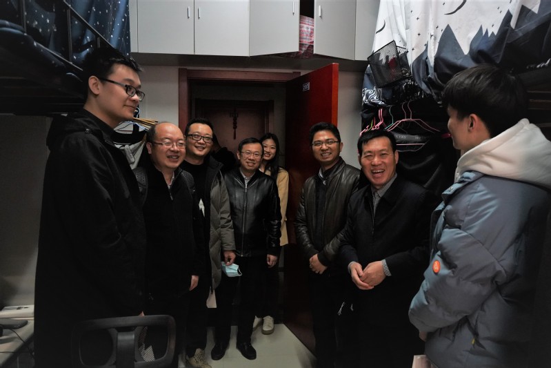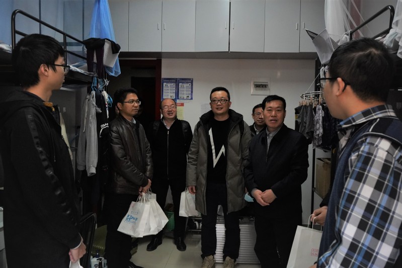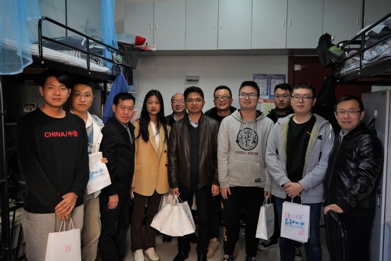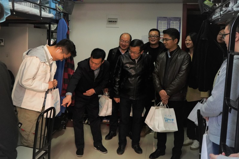 英国上市公司365党委书记袁智强,副院长魏小辉、陆洋、王立峰,党委副书记佘明和2018级辅导员来到学生宿舍,为同学们送去了这一份份饱含心意的考研礼包。