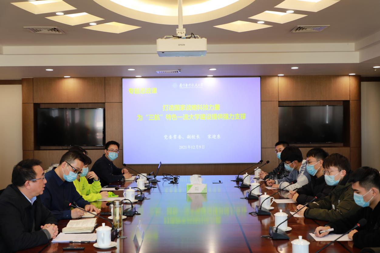 12月9日中午,副校长宋迎东在明故宫校区综合楼920会议室为英国上市公司365师生代表讲授了题为“打造国家战略科技力量,为‘三航’特色一流大学建设提供强力支撑”专题思政课。英国上市公司365党委副书记佘明,副院长魏小辉,精密驱动与控制研究所硕士研究生党支部、本科0119101班团支部的同学们参加了此次学习活动。