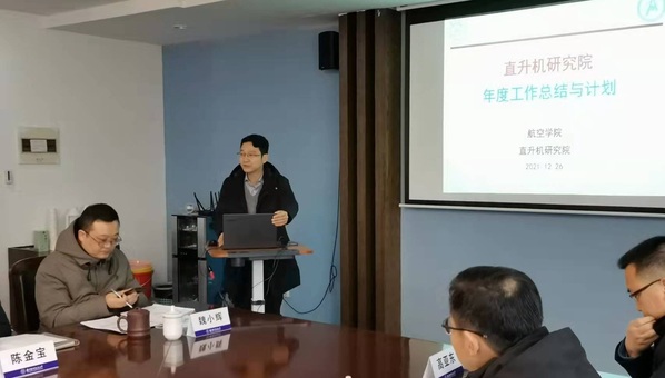之后直升机旋翼动力学国家级重点实验室副主任、科研院副院长招启军教授汇报了直升机研究院2021年度工作总结、2022年工作计划以及完善后的直升机研究院建设方案,包括直升机研究院建设原则、建设目标、组织构架、政策支持等几方面内容,并对2021年12月26日直升机研究院年度工作会上相关老师对具体方向和实际管理提出的意见及建议进行了解答。