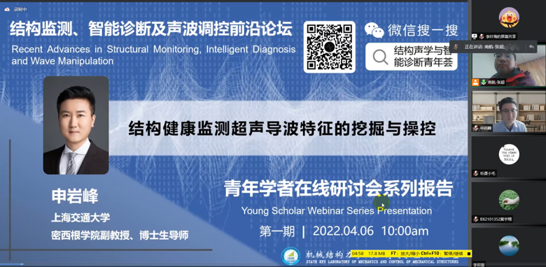2022年4月6日,机械结构力学及控制国家重点实验室和结构声学与智能诊断青年荟联合举办了第一期学术研讨会活动。