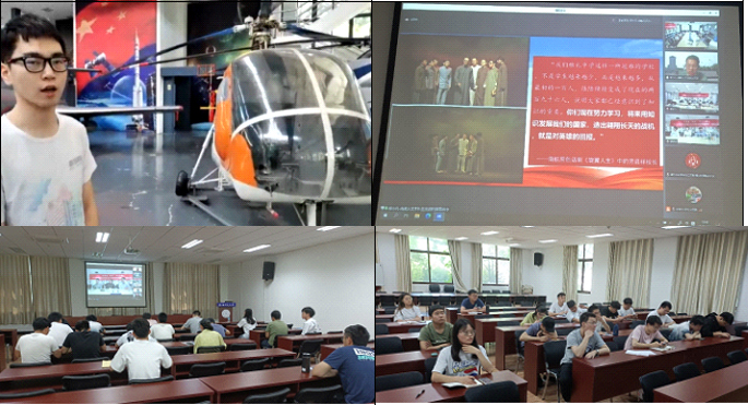 直升机研究生第二党支部参与了我校机电学院航智研究生党支部、中国农业大学种子科学与技术研究中心研究生党支部的“抓党建‘双创’,育时代新人——学习习近平总书记在中国人民大学考察时的重要讲话精神”主题党日活动。活动采用线上与线下相结合的形式,在南航和中国农业大学分别布置会场学习。支部书记周旭同志带领全体成员线上云游航空航天馆。通过和全国高校“百个样板党支部”结对共建的形式,邀请兄弟院校研究生党建“双创”标兵个人分享个人优秀事迹和党建工作先进经验,搭建与党员标兵、样板支部面对面交流平台,引导支部研究生党员牢记党的教诲,立志民族复兴,不负韶华,不负时代,不负人民,努力成为堪当民族复兴重任的时代新人。