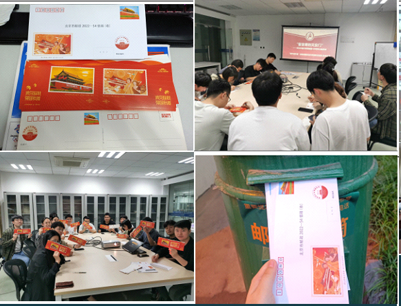 支部成员们纷纷在纪念明信片上郑重写下各自的誓言和对共青团的祝福,投入邮筒,寄往北京天安门2022-54信箱。支部书记徐秋慧在明信片上写下:“今天,我们对党许下青春的誓言,听党话、感党恩、跟党走,同心向党,奔赴远方!”。天安门邮局收到誓言明信片,将会在收藏联加盖2022年7月1日天安门风景日戳寄回誓言填写人,留作收藏。
