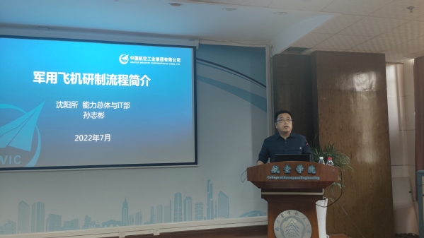 应我校英国上市公司365飞行器先进设计技术国防重点学科实验室魏小辉教授邀请,沈阳飞机设计研究所能力总体与IT部副部长孙志彬研究员于2022年7月20日访问我校,并为我校师生做了题为“军用飞机研制流程简介”的学术报告。
