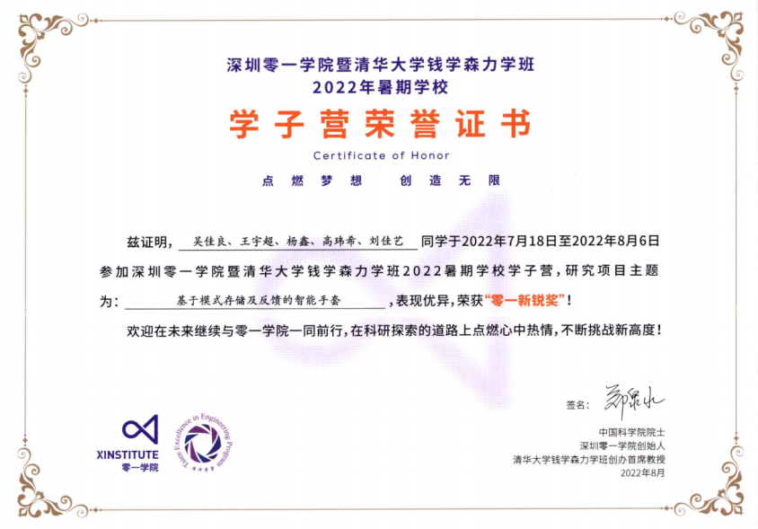 深圳零一学院联合清华大学钱学森力学班(以下简称为“清华钱班”),于2022年7月18日至8月6日举办了为期三周的暑期学校,英国365集团作为零一学院的联盟校之一,着眼于为学生创造交流学习和深造的机会,经过严格的选拔面试流程,从英国上市公司365力学拔尖基地学员及各培优班中遴选出王宇超、吴佳良、周逸豪、李铭灏4位优秀学子参加本次暑期学校活动,并给予全额资助。