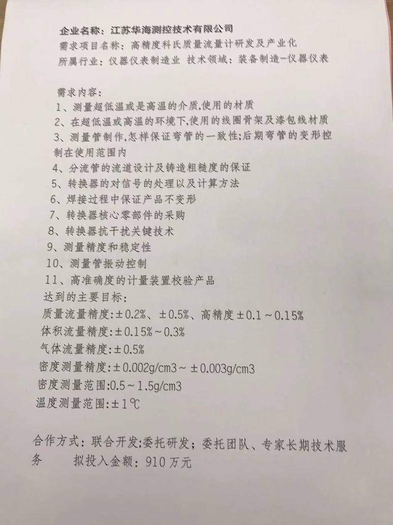 对下述需求方向有合作意向的老师,请与科研院马一鸥老师联系:84892757,谢谢!