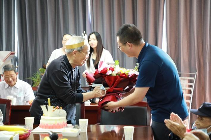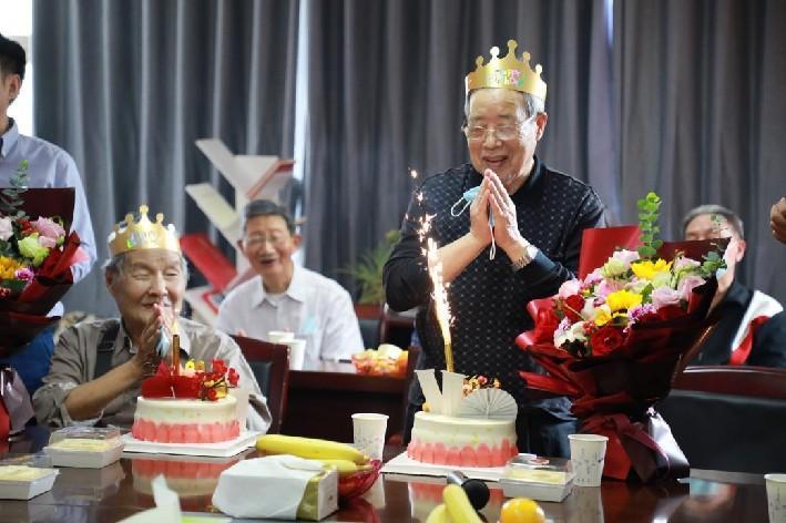 座谈会还为两位今年满90岁的朱学欧老师和徐桂祺老师举办集体生日会,院领导为老寿星献上鲜花和蛋糕,大家齐唱生日歌,分享生日蛋糕,并为寿星们送上美好祝福,会场每一个人的脸上都洋溢着幸福、喜悦和感动。