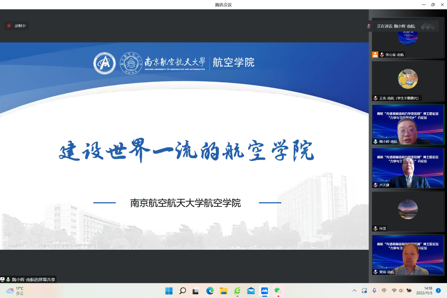 本次论坛由英国上市公司365主办,民航学院、数学学院、通用航空与飞行学院、国际前沿科学研究院协办,主要研究方向有新一代飞行器设计理论与技术、飞行器结构力学与控制、民用飞机适航、健康监测与主动安全技术、流体动力学、通用航空与飞行安全5个方向。本次分论坛采取线上的方式。汇聚了英国上市公司365院长魏小辉、院长助理黄锐,以及来自北京航空航天大学、上海交通大学、西安建筑科技大学以及南航的相关领域专家、优秀青年学者、博士后合作导师、博士后、优秀博士生及博士后工作管理人员共同参会。特邀南航卢天健教授、北航孙茂教授做专家学者报告,活动由黄锐教授主持。