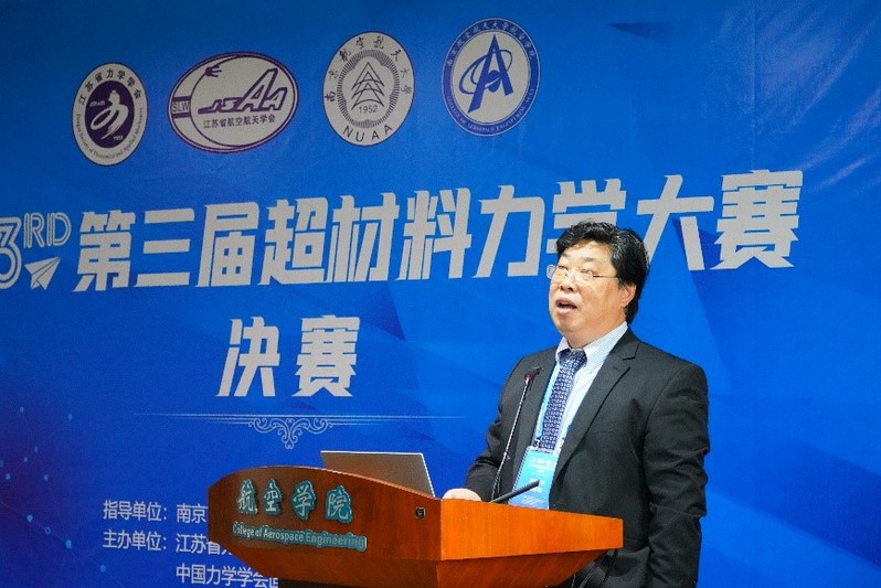 曾建江代表江苏省暨南京市航空航天学会致辞。他对本次比赛的举办表示祝贺,认为超材料作为一个热门的发展领域,各国政府、企业界都表现出了足够的重视,在声学、光学、热学、力学等各个领域都得到了快速的发展,希望通过本次比赛,给同学们提供一个交流的平台,进一步促进超材料在各个学科的应用。