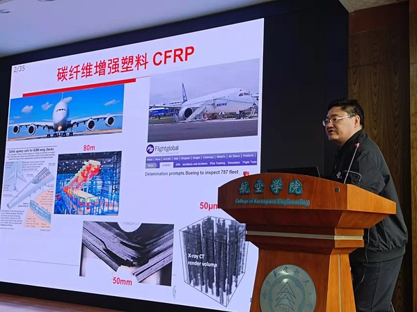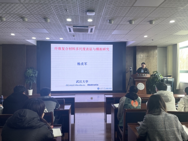 应我校航空航天结构力学及控制国家重点实验室胡克强教授的邀请,武汉大学土木建筑工程学院杨贞军教授于2023年3月24日在明故宫校区A18-529做了题为“纤维复材破坏过程的多尺度实验表征与计算模拟”的学术报告。报告介绍了杨贞军课题组近年来在树脂基和水泥基纤维复材断裂损伤多尺度实验和数值模拟方面的进展,主要讨论原位加载条件下基于微观工业CT和同步辐射光源扫描图像的断裂过程实验表征,基于深度学习算法的微观组分和缺陷的识别和分割,以及基于CT图像的破坏全过程的微细观模拟及原位实验验证。报告内容丰富、精彩生动,对我校相关科研工作具有借鉴作用。同时,杨贞军教授还结合自己多年的研究经历,与现场听众分享了研究心得和体会。胡克强教授主持了报告会。