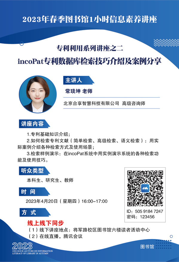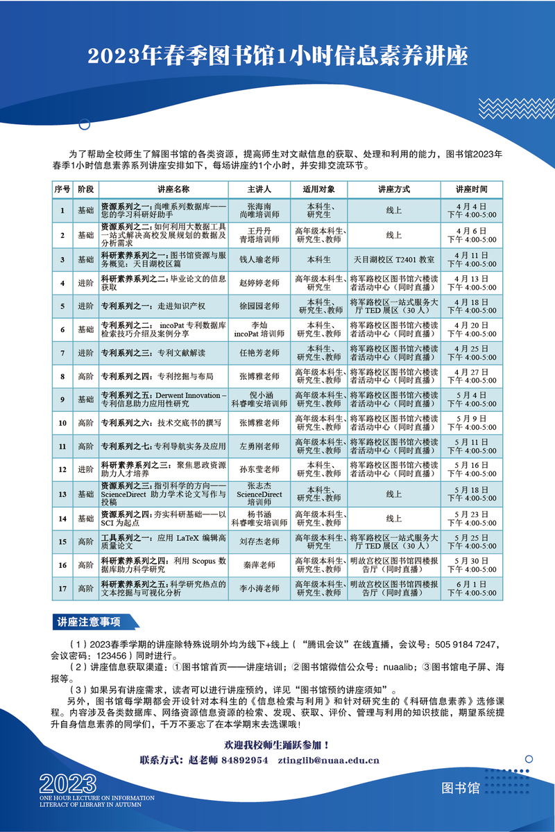 附件:2023年春季图书馆1小时信息素养讲座安排.docx