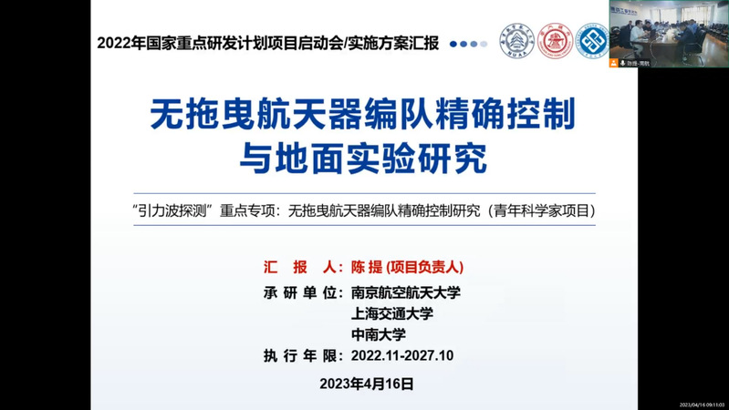 4月16日,科研院组织召开了由我校陈提教授牵头承担的国家重点研发计划“引力波探测”重点专项青年科学家项目的启动会暨实施方案论证会,会议采取线上线下相结合的形式进行。