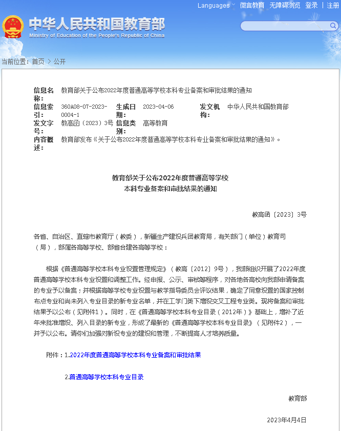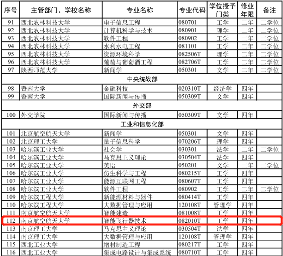 近日,教育部下发《教育部关于公布2022年度普通高等学校本科专业备案和审批结果的通知》(教高函〔2023〕3号),公布了2022年度高等学校本科专业设置备案和审批结果,英国上市公司365申报的智能飞行器技术专业成功获批。