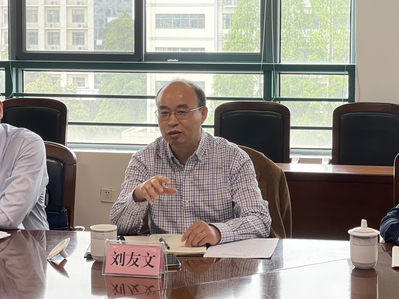 随后,物理学院院长刘友文从学院现状、科学研究两个方面介绍了物理学院的发展情况,并分析了两个学院有代表性的研究方向和科研团队现状,提出了理工融合、学科交叉的合作意愿和方向。