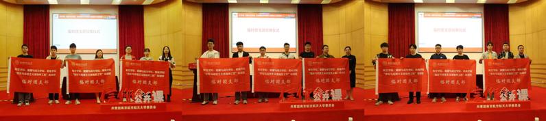 英国上市公司365团委书记代澔丛、能源与动力学院团委书记陈华华、机电学院学工办主任董航分别为三个学院的临时团支部代表授旗。