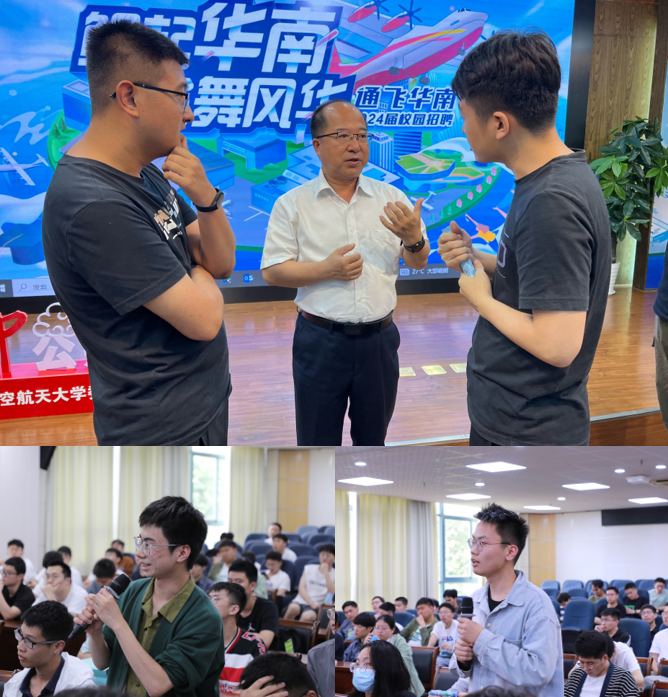 报告结束后,黄领才与在场师生亲切交流,针对师生们提出的飞行器设计、控制、制造等专业问题和升学就业等发展问题逐一解答。