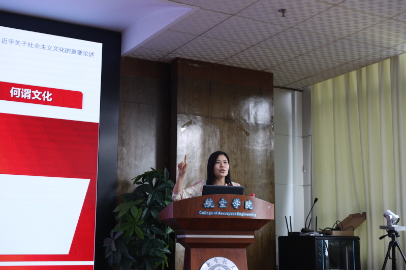 何畏以《更好担负起新时代新的文化使命——习近平关于社会主义文化建设的重要论述》为题给毕业生党员上了最后一堂党课。她以近期召开的文化传承座谈会为引子,围绕中国特色社会主义文化建设理论提出的时代背景、重要内容和深刻意义三个方面,介绍了文化作为“软实力”的重要国家战略意义,用清晰的思路、生动的语言、严密的逻辑、鲜明的观点将深邃的理论化繁为简,带领师生们“拨开迷雾”,学习如何辨别被精致理论包装的错误社会思潮,鼓励毕业生党员们传承和发扬中华文明传统文化,牢记航空报国初心使命。