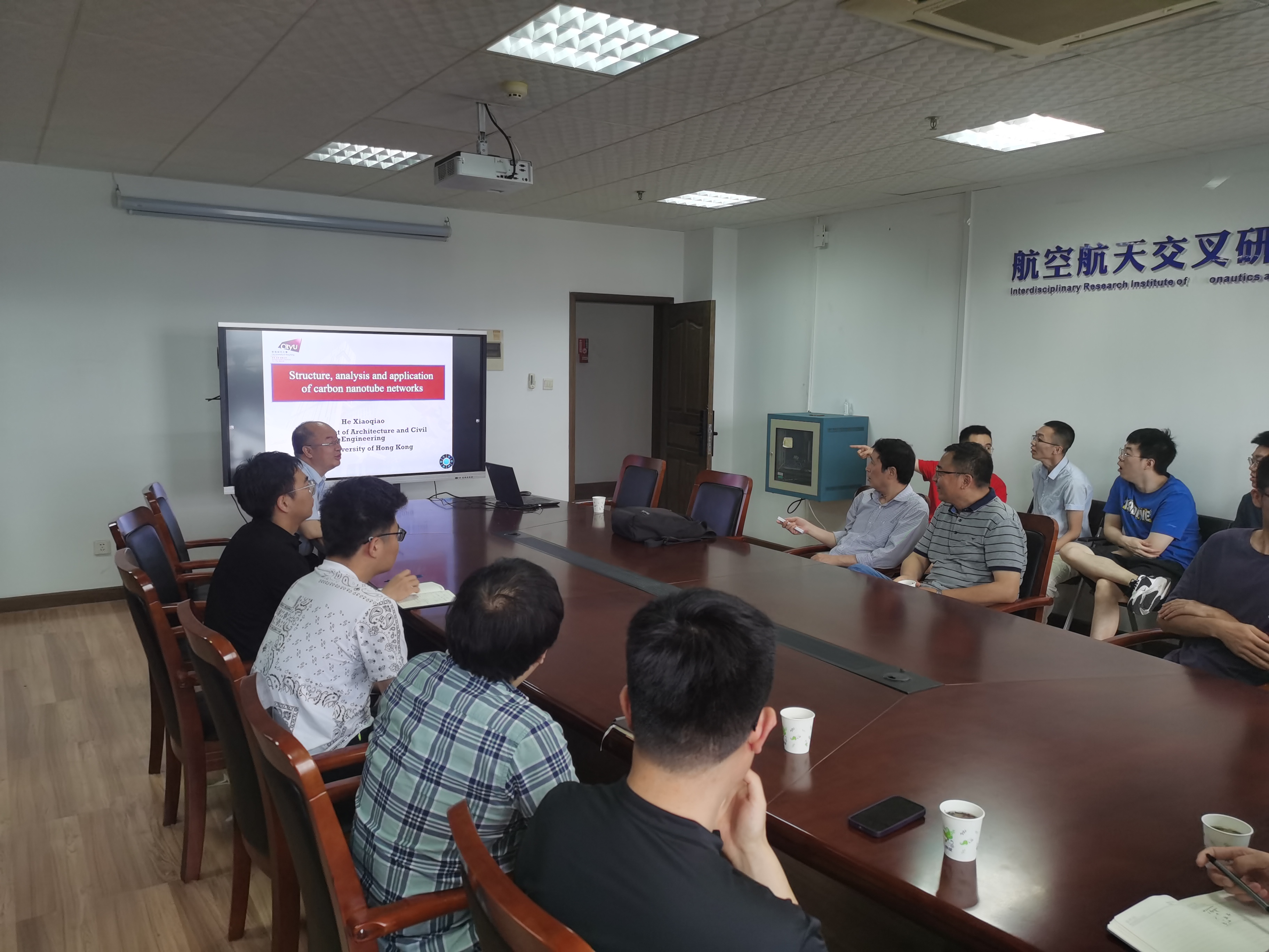 应我校航空航天结构力学与控制全国重点实验室王立峰教授的邀请,香港城市大学何小桥教授于2023年6月17日星期六在明故宫校区18号楼1109会议室作了题为“碳纳米管网络结构的力学分析,制造和应用 -分子动力学模拟”的报告。报告会上何小桥教授介绍了超级碳纳米管网络结构的背景,详细介绍了通过分子动力学模拟碳纳米管网络结构力学特性的最新研究进展,并展示了碳纳米管几何结构对力学性能的影响,以及缺陷对碳纳米管承载能力的影响。最后,何教授提出,碳纳米管网络结构过滤膜在海水淡化及气体提纯方面有很大的潜力,并介绍了碳纳米管网络结构的微纳制造过程。