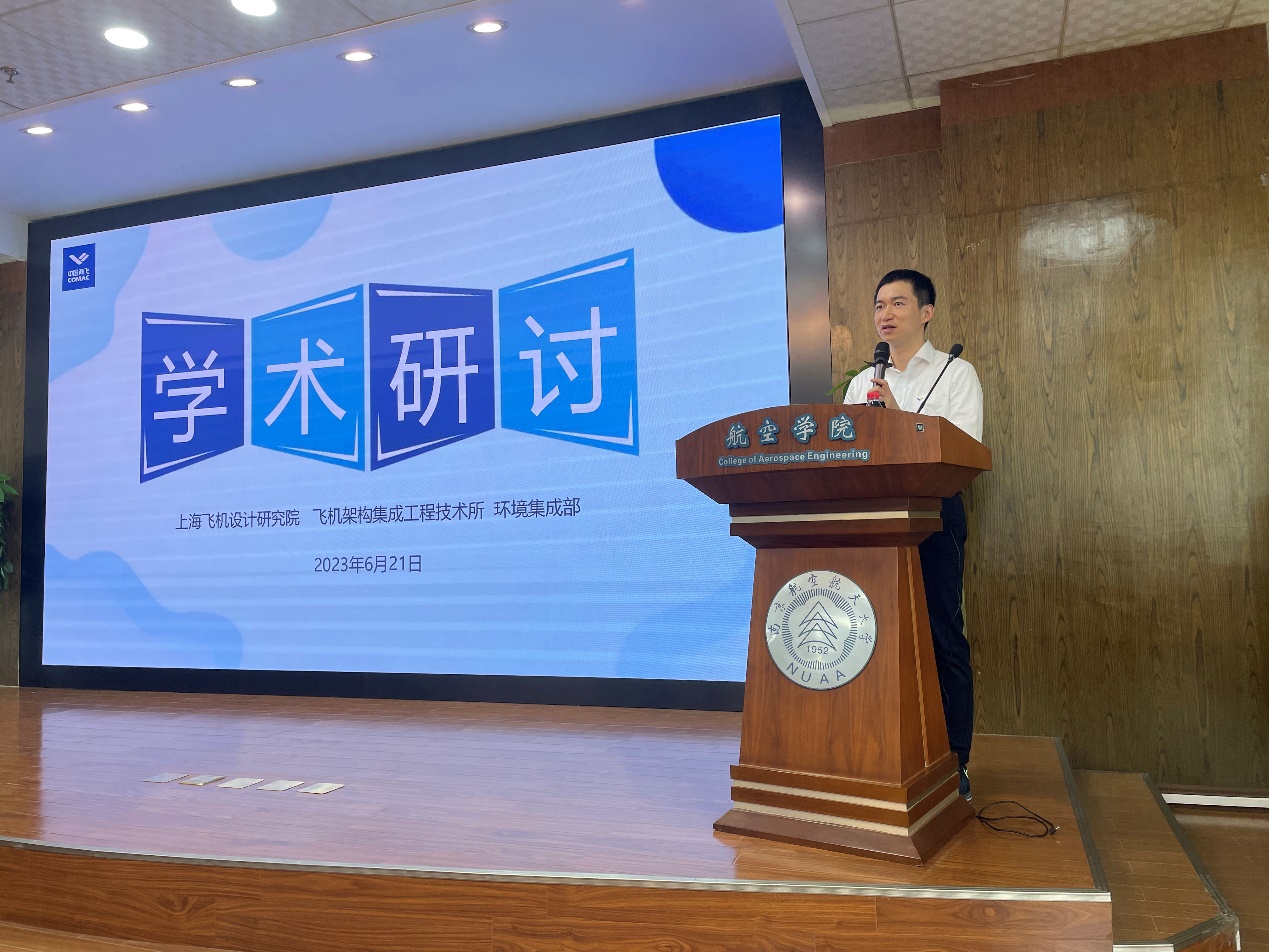 会上,张振伟介绍了民用飞机适航取证各研制阶段的相关工作,回顾了C919项目从立项、首飞、试飞到取证的历程。随后重点探讨了环境集成部电磁、闪电、噪声等专业在民用飞机设计过程中发挥的作用,并对同学们关注的问题作出解答。