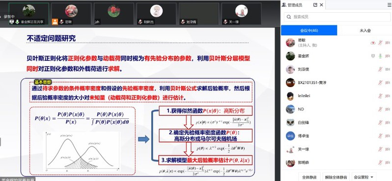 报告以飞机结构动载荷形态复杂且难以直接测定为背景,围绕结构动载荷重构的关键技术问题展开。针对分布动载荷的高精度识别、不确定性结构、不适定性以及初始条件未知等技术难题,分别介绍应对的策略及方法,包括卡尔曼滤波、深度学习、动载荷的快速定位方法等前沿方法,并对未来的动载荷识别技术的发展进行展望。报告内容丰富、精彩生动。报告结束后,姜金辉教授还同线上和线下的与会教师和学生开展了深入交流,就动载荷识别算法、人工智能方法、结构损伤与破坏等问题进行了的详细讨论。