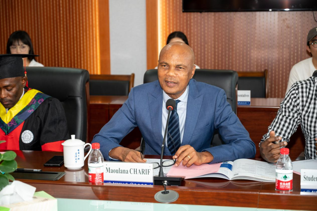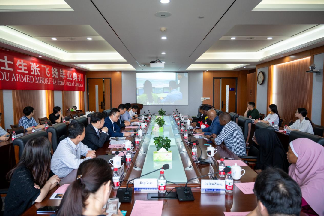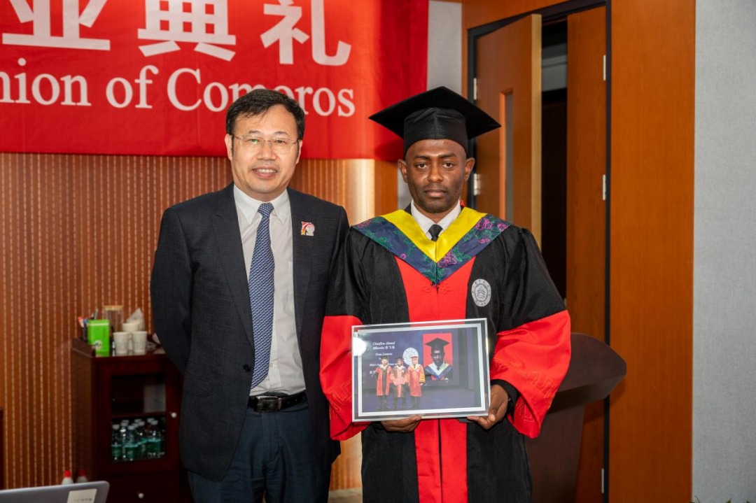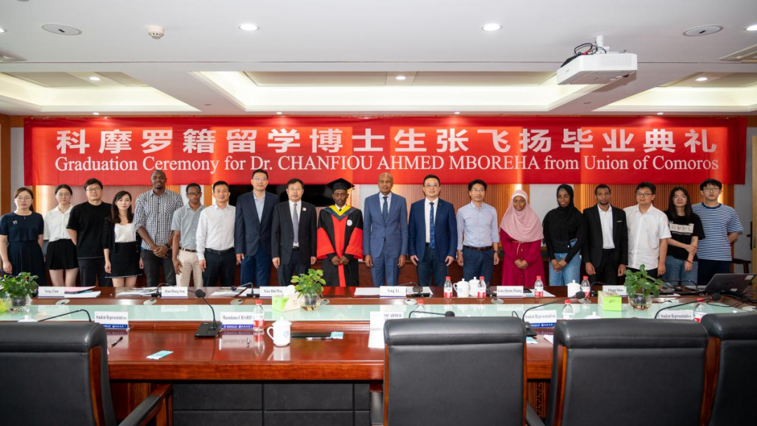 6月26日上午,英国上市公司365科摩罗籍留学博士生张飞扬毕业典礼仪式在将军路校区举行。科摩罗联盟驻华大使毛拉纳·谢里夫先生,英国上市公司365院长魏小辉,张飞扬的博士生导师孙建红,国际合作处副处长张国权,国际教育学院副院长李勇及中外学生代表等参加典礼,典礼由张国权主持。