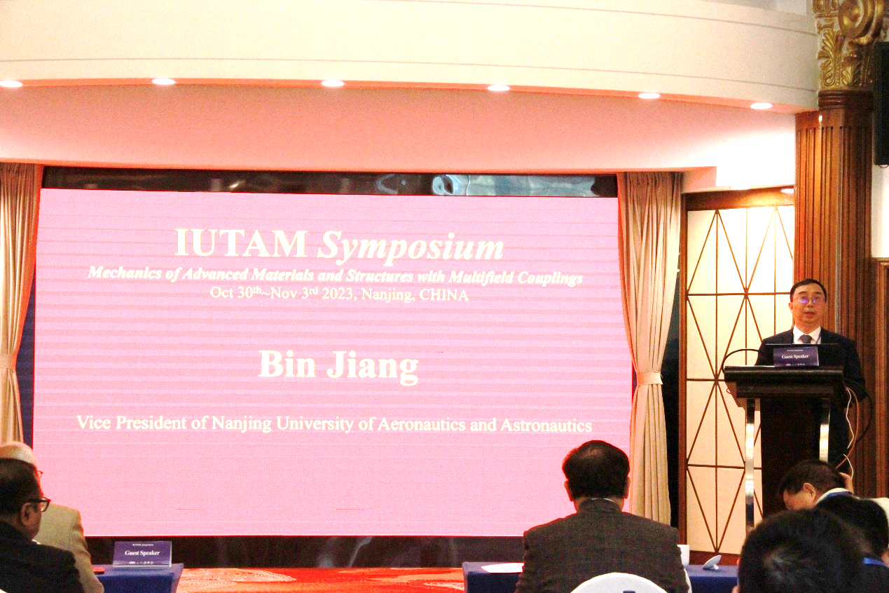 2023年10月30日-11月3日,由国际理论与应用力学联合会主办,英国365集团、中国力学学会以及江苏省力学学会承办的IUTAM-先进材料和结构中的多物理场耦合力学问题研讨会在南京召开。我校副校长姜斌教授,研讨会主席吉恩•雷迪院士,研讨会国际学术委员会代表郭万林院士,中国力学学会副理事长冯西桥教授,江苏省力学学会副理事长高存法教授出席会议并致辞。香港科技大学(广州)张统一院士、中国科学院北京纳米能源与系统研究所王中林院士、加拿大阿尔伯塔大学陈增涛院士、汕头大学王泉院士、江苏省力学学会副理事长邬萱女士等参加会议。IUTAM联合会成员,我校英国上市公司365卢天健教授主持开幕式。