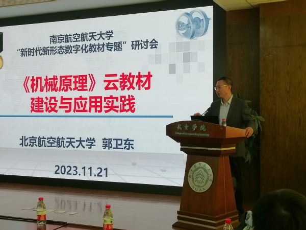 郭卫东教授以《机械原理》云教材为例,介绍了新形态数字化教材建设的历程和应用。首先结合纸质教材的建设,介绍了云教材建设的初衷,然后详细介绍了《机械原理》云教材的呈现形式和特点,接着简介云教材在教学过程中的应用,以及通过云教材和云班课实现的混合式研究型教学方法,最后给出云教材建设的体会。