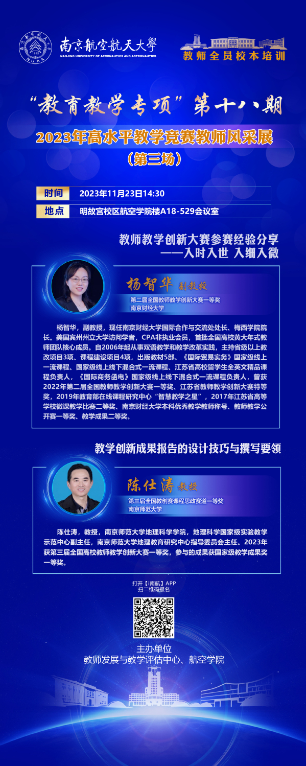 报告人:杨智华副教授(第二届全国教师教学创新大赛一等奖,南京财经大学)