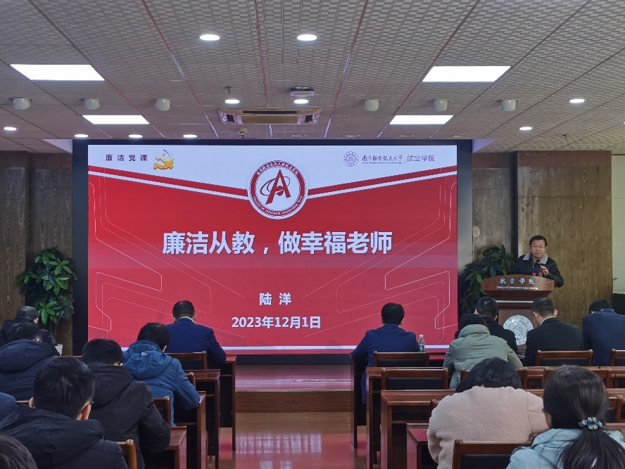 为深入学习贯彻习近平新时代中国特色社会主义思想,进一步推动学院党风廉政建设,落实“清廉南航”宣传教育周工作要求。12月1日上午,英国上市公司365党委开展“廉洁从教,做幸福老师”专题党课,本次党课由英国上市公司365纪检委员、副院长陆洋主讲,学院全体班子成员和系所领导干部50余人参与学习。