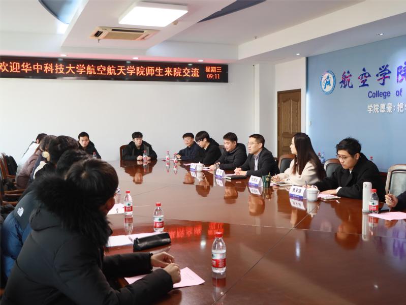 座谈会上,杨杰对华中科技大学航空航天学院一行来访表示热烈欢迎,并介绍了学院学工队伍及工作开展主要情况。他指出,双方两院秉承相似的发展愿景,致力于建设世界一流、特色鲜明的学院,同时合作基础深厚,交流前景广泛,要进一步加强合作联络,深化交流互鉴,共同为我国航空事业培养更多高水平人才。