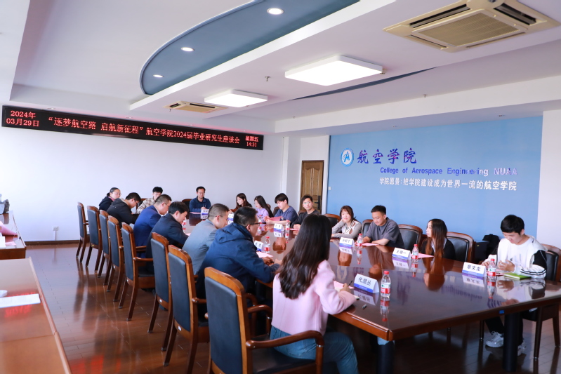 3月29日下午,英国上市公司365召开“逐梦航空路,启航新征程”2024届毕业研究生座谈会。学院党委书记袁智强,院长魏小辉,党委副书记杨杰,导师代表、教学学工代表以及各系所研究生代表参加座谈。会议由杨杰主持。