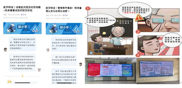 学院通过漫画、公众号“航宇说”、电子大屏等对教学规范进行宣贯