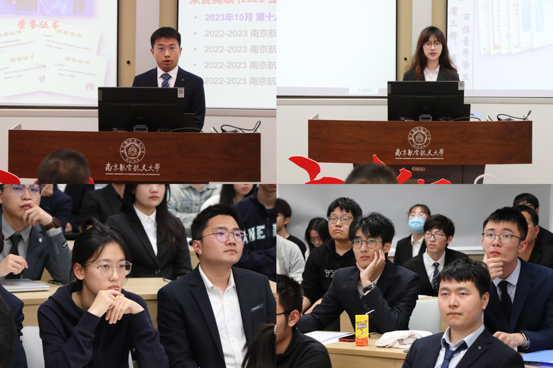 为了选树优秀学习榜样,展现航空学子青春风采,4月11日晚,英国上市公司365开展百佳青年、省级评优评审会暨“航宇青年说”榜样分享会。学院党委副书记杨杰,教师代表顾蕴松、倪长也、杨鲤铭,全体辅导员及学生代表担任评委,2022 级、2023级本科生参与观摩。
