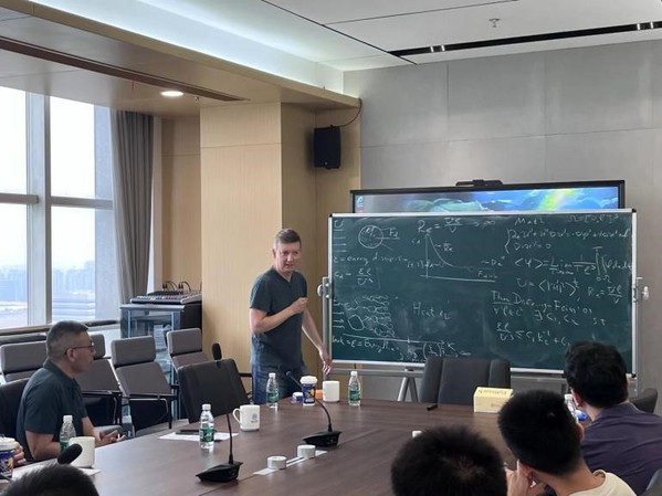 徐霄乾教授由生活中的实例引入混合流的概念,讲解其在平流-扩散反应方程领域中所起的作用,例如著名的趋化性Keller-Segel方程,随后徐霄乾教授着重讲解了对流项在混合流方程中对于混合效果的重要性,并详细介绍了蜂窝流和剪切流在流体混合过程中的良好效果及其数学解释。讲座过程中两位教授与我方师生就讲座内容进行了充分的交流,开阔了老师和同学们的眼界,对大家从事研究工作有很大启发。