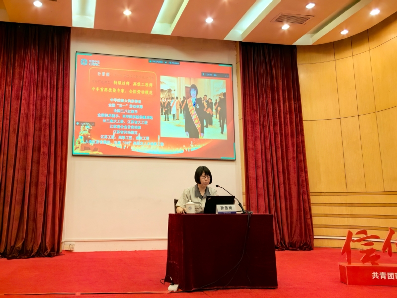 孙景南以“弘扬工匠精神,实干成就梦想”为题作报告。作为来自一线的工匠,她在30多年的工作中经历了“从传统的铁路客车到地铁、高铁动车组,从国外技术引进到大范围自主研发”的发展历程,她鼓励同学们要立足自身专业,牢固树立劳动光荣、创造伟大的观念,砥砺奋进,共同书写不负时代、不负使命的青春答卷。