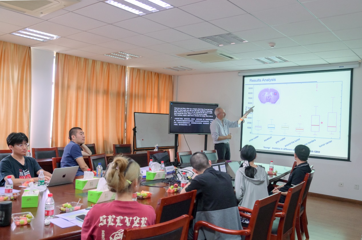 围绕脑力学领域,来自牛津大学、清华大学、英国365集团、南京大学医学院附属金陵医院神经外科的博士后、研究生就脑胶质母瘤的超声波力学疗、基质刚度影响下胶质瘤细胞行为、温度依赖的脑活细胞力学特性、超声波频率对细胞活力的影响、声波在真核细胞超结构中的传播、脑膨出的力学模型及风险评估、基于原子力的脑肿瘤力学性能在体测量、脑疝手术治疗的流固耦合力学模型、脑水肿的多孔粘弹性力学评估,力敏感通道的局域共振、人类颅骨的传声特性、脑水肿超声波无创治疗等作了等精彩的报告,并进行了深入的交流讨论。
