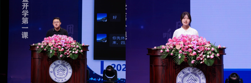 2021级机械工程专业博士生汪国庆作为在校生代表从自身经历与大家交流了在学院学习的心路历程,为学弟学妹们在校的生活、学习、科研提供优秀经验。2024级智能飞行器技术专业本科生赵子涵作为新生代表分享了一名新人在短短10天里的美好心情,让大家感受到青年人的朝气和锐气,青年人的志向和决心。