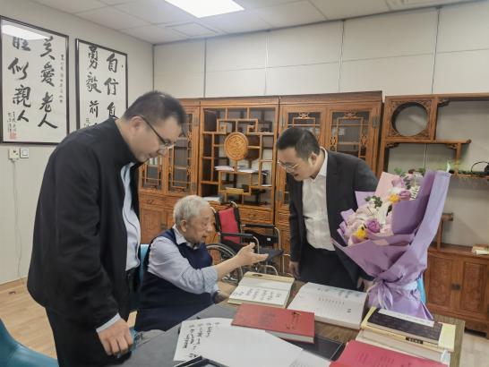 学院领导来到98岁的乔新老师家中,亲切地与乔老师亲切交谈,闲聊家常。乔老师精神矍铄、面色红润,言语清楚、思路清晰,脸上始终洋溢着喜悦的笑容,他表示能够在这样一个特殊的日子收到来自学院的祝福,倍感荣幸和幸福。