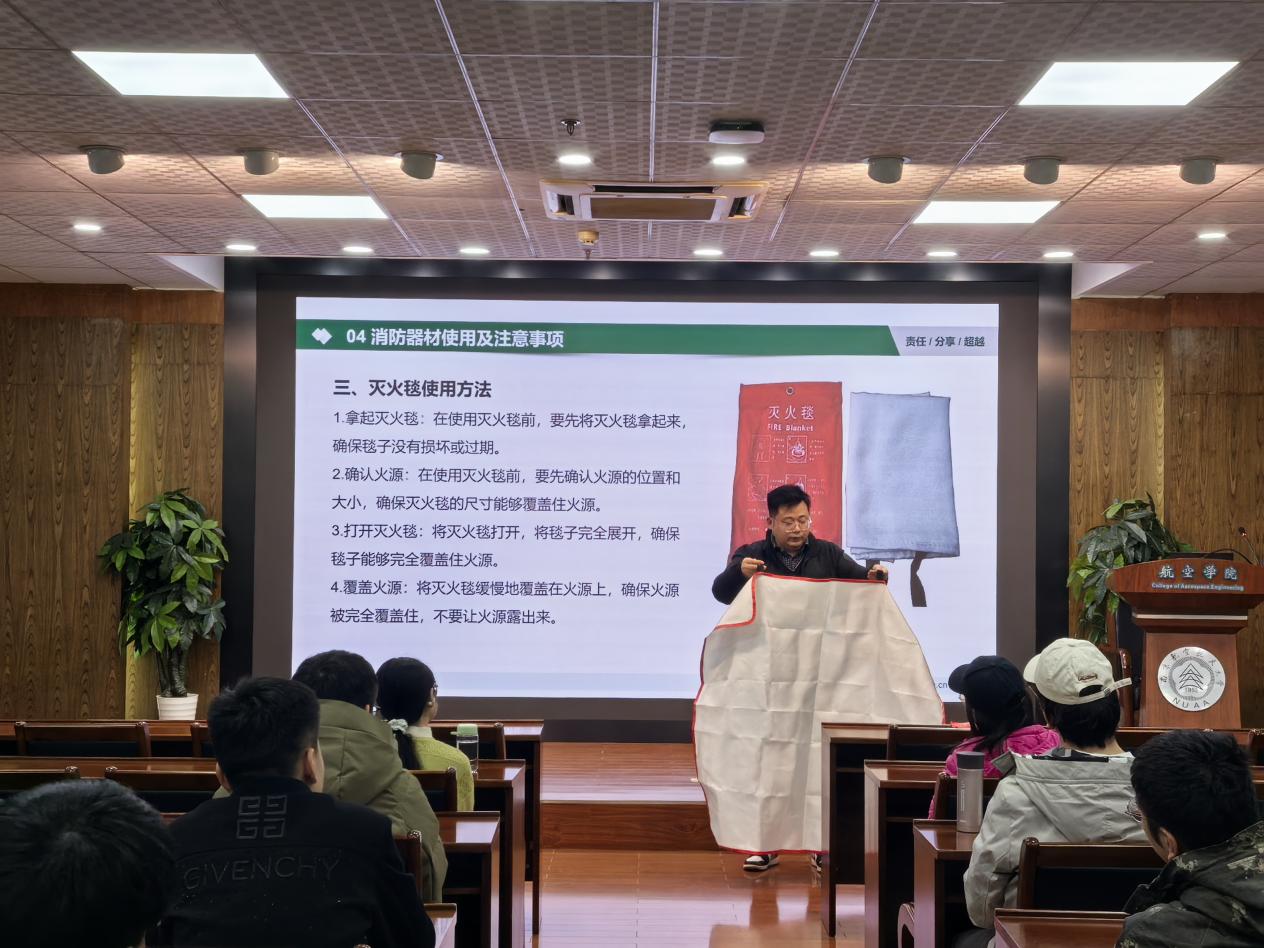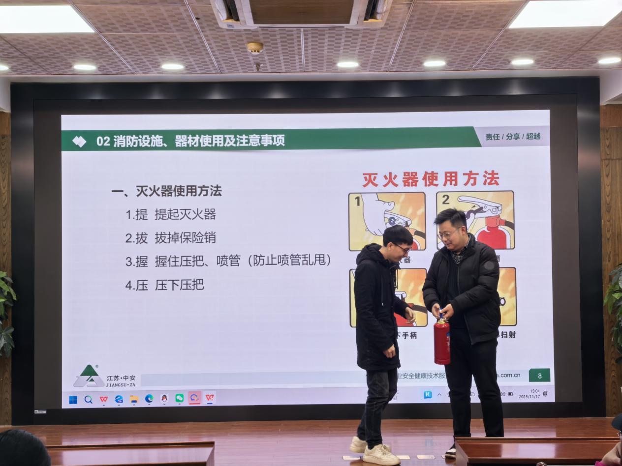 培训特别安排了实操教学环节,通过规范演示灭火器、灭火毯等常用消防器材的正确操作要领,使抽象的理论转化为具体的实战能力,有效提升了参训人员的器械应用水平。整场讲座内容充实,与会人员全神贯注,反响热烈,取得了显著的教育成效。