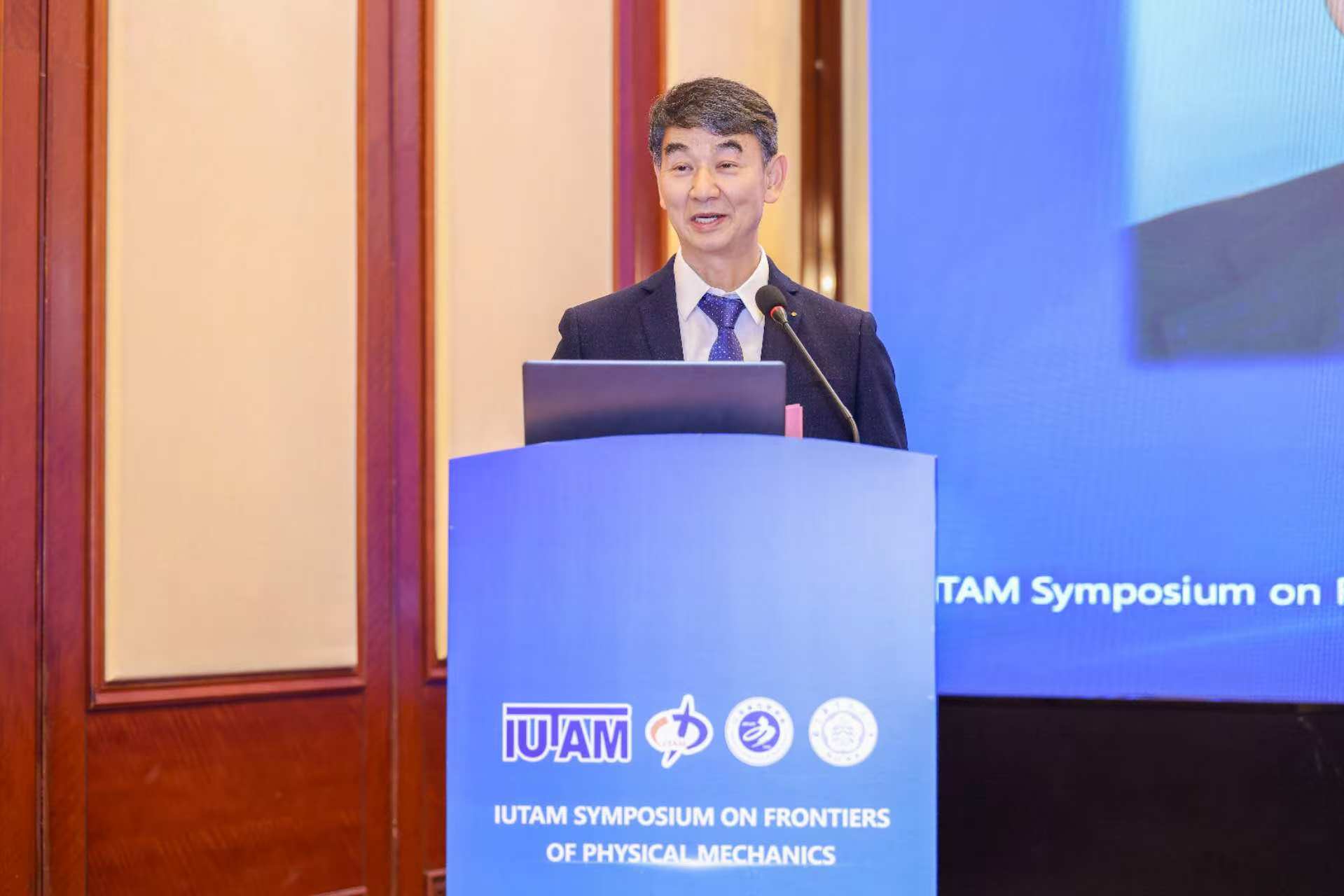 卢天健教授作为IUTAM代表在开幕式上致辞。他表示,本次研讨会以物理力学前沿为主题,是国际力学界高度关注的重要学术活动。会议所涉及的多尺度建模、智能材料、极端条件力学等方向,正是推动学科发展、引领工程创新的关键领域。卢天健教授代表IUTAM对会议的成功召开表示高度肯定,对南航承担主办任务所付出的努力表示感谢。他希望与会专家深入讨论,激发新思想、形成新合作,共同推动国际力学科学的发展。