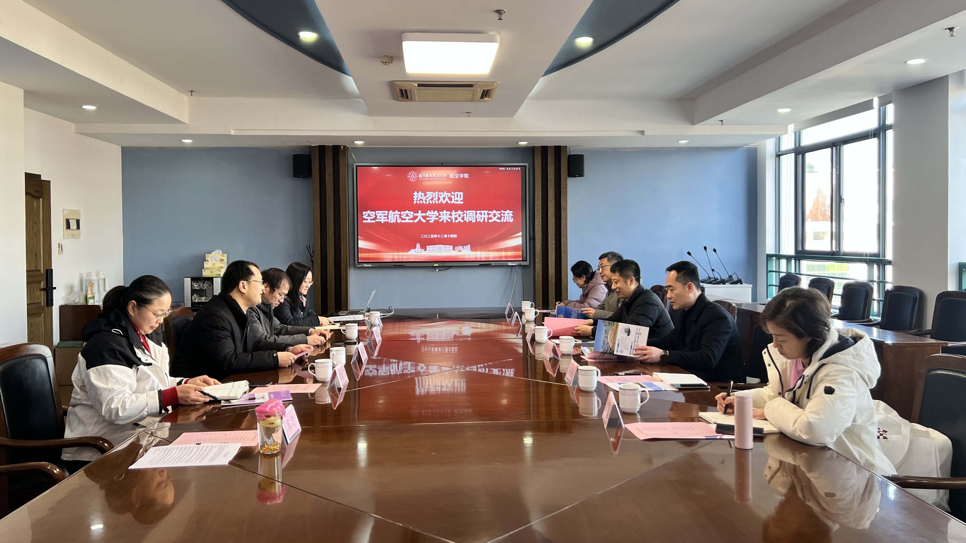 2025年12月14日上午,空军航空大学航空基础学院参谋长丁吉等一行6人,赴我校进行调研交流。