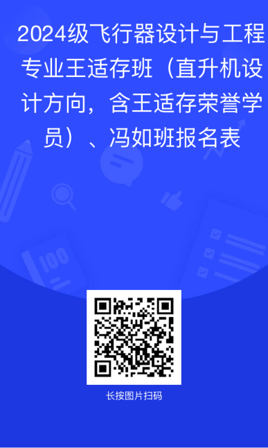 报名范围:2024级长空学院分流至飞行器设计与工程专业的学生(除卓越班)