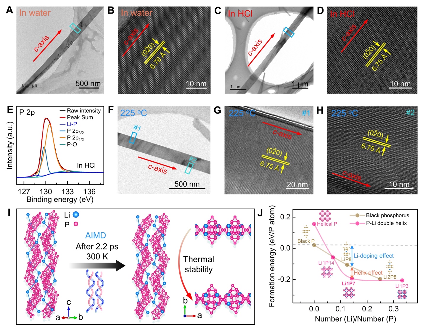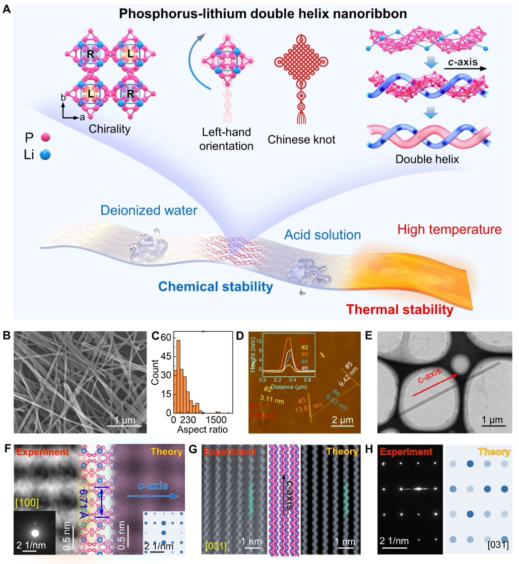 图1. 磷-锂双螺旋纳米带结构与形貌表征